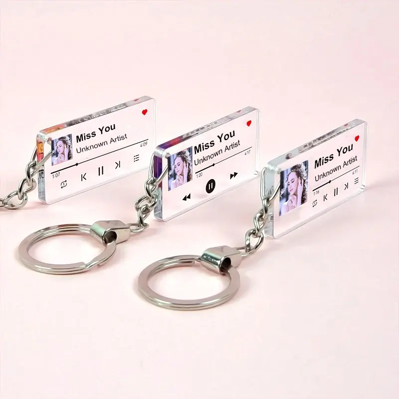 Llavero transparente acrílico de Spotify personalizado, código de escaneo, canción musical, nombre, cantante, portada del álbum, llavero personalizado, regalos de fotos para hombres y mujeres