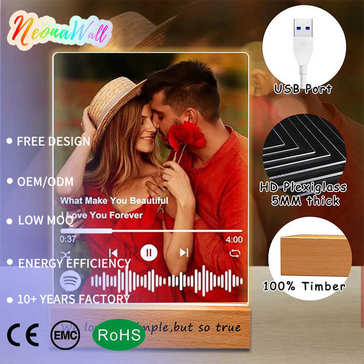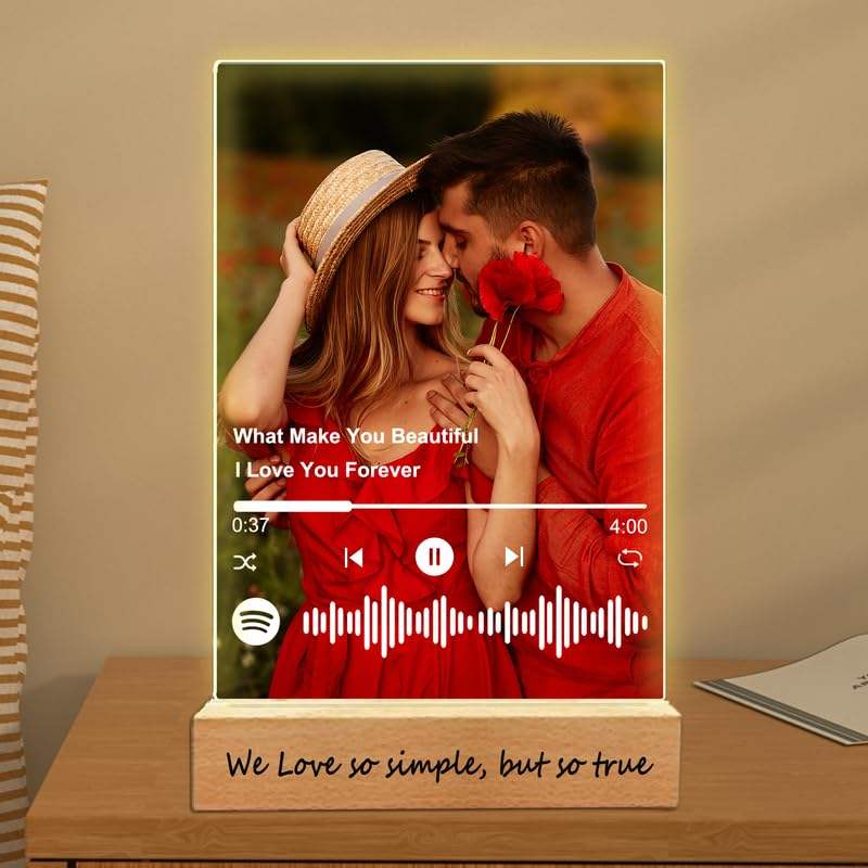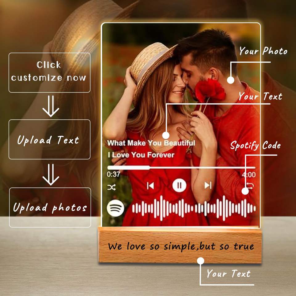 Placa Acrílica Personalizada con Foto y Base de Madera, Luz Nocturna LED, Regalo Romántico para Parejas, Día de San Valentín, Aniversario