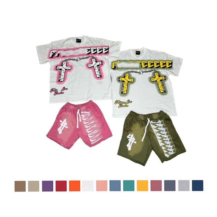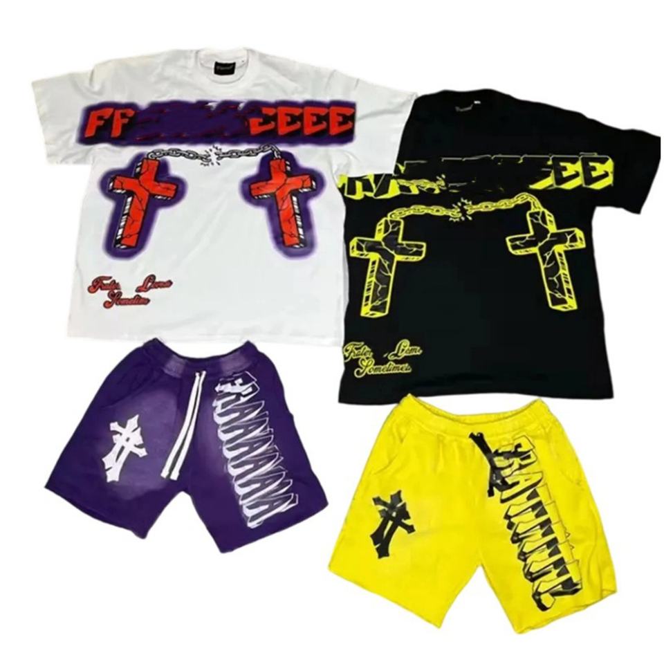 Conjunto de 2 Piezas Personalizado de Camiseta y Pantalones Cortos para Hombre, Estilo Urbano, 100% Algodón, Felpa Francesa Gruesa, Estampado, Cintura Elástica, Tallas Grandes