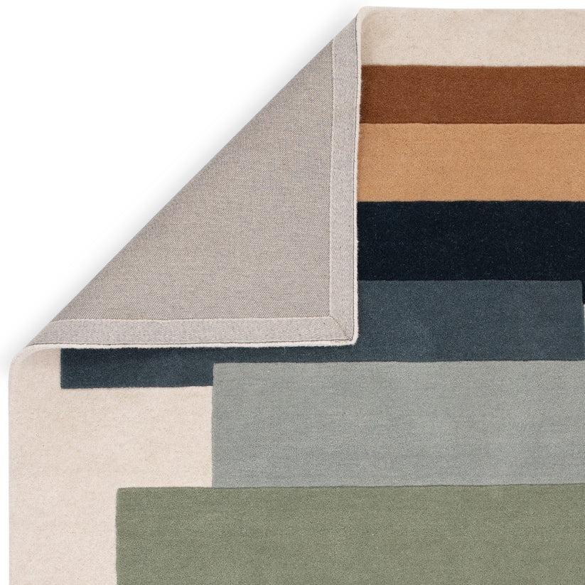 Alfombra geométrica moderna personalizada Stacks en alfombra de lana con mechones a mano verde Alfombra de área duradera de diseñador hecha a mano abstracta contemporánea