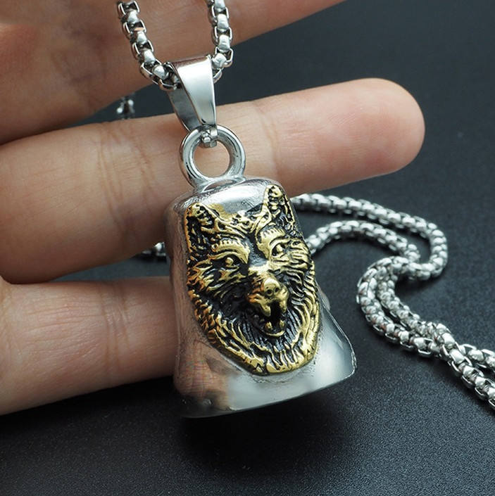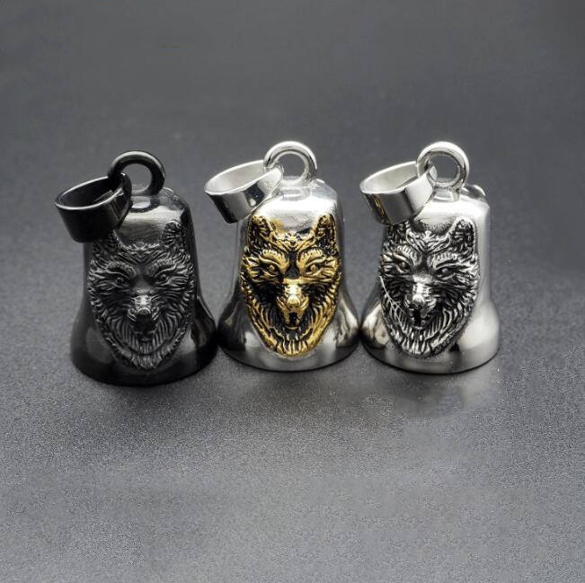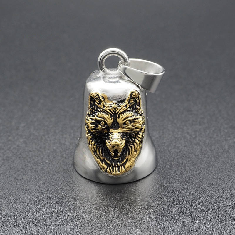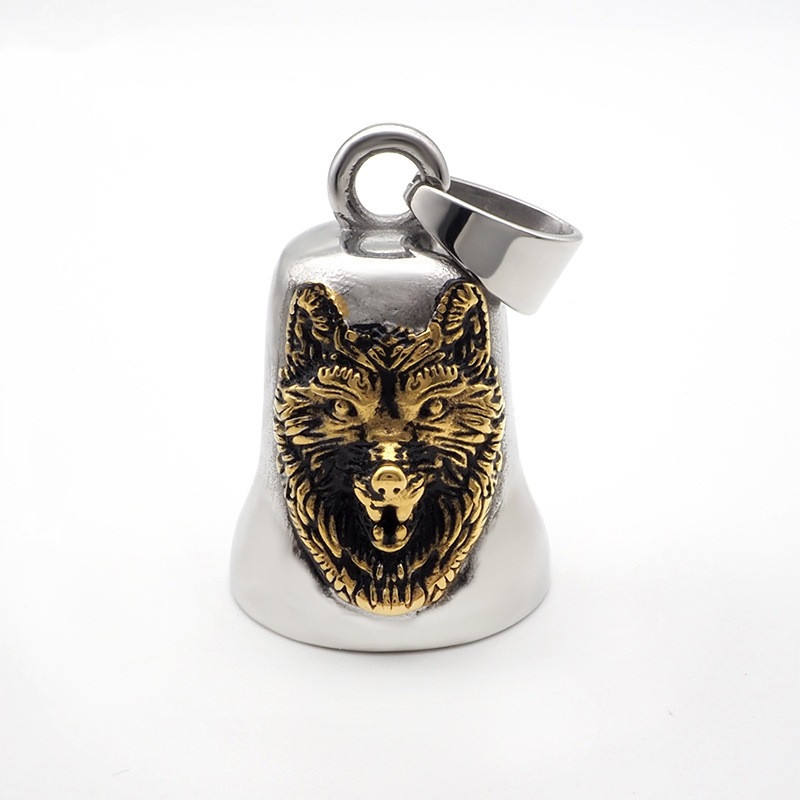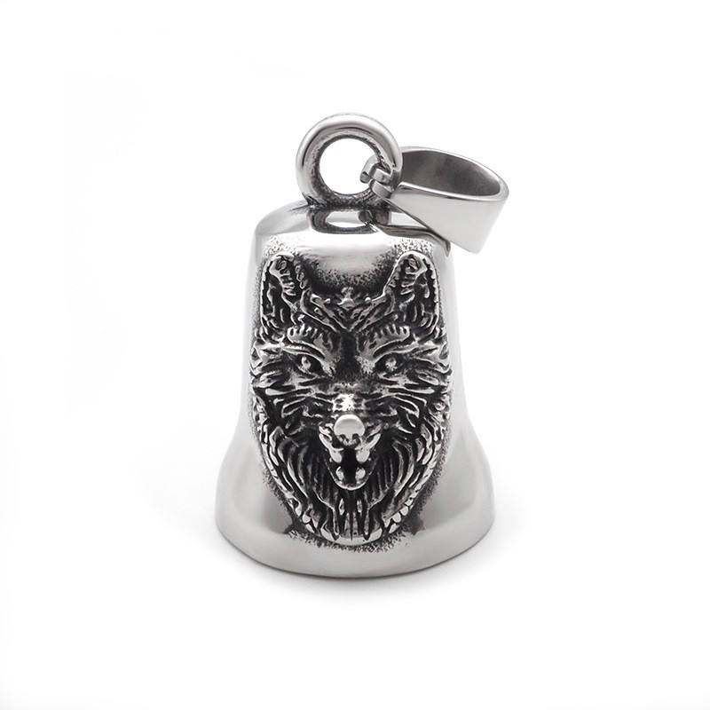 Campana Personalizada de Acero Inoxidable con Cabeza de Lobo Vikingo, Amuleto de Protección para Motociclistas
