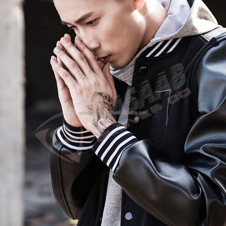 Chaqueta de cuero de cuello alto personalizada para hombre parches de piel de vaca genuina de alta calidad estilo americano transpirable con cremallera invierno negro