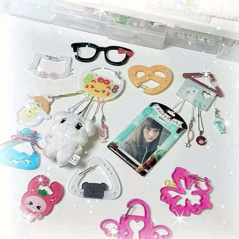Colgante de acrílico personalizado con diseño de animación de estrellas y accesorios de belleza, con mosquetón de montañismo, para mochila escolar, llaveros promocionales y mosquetones