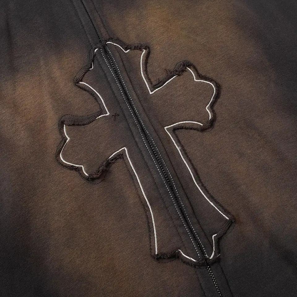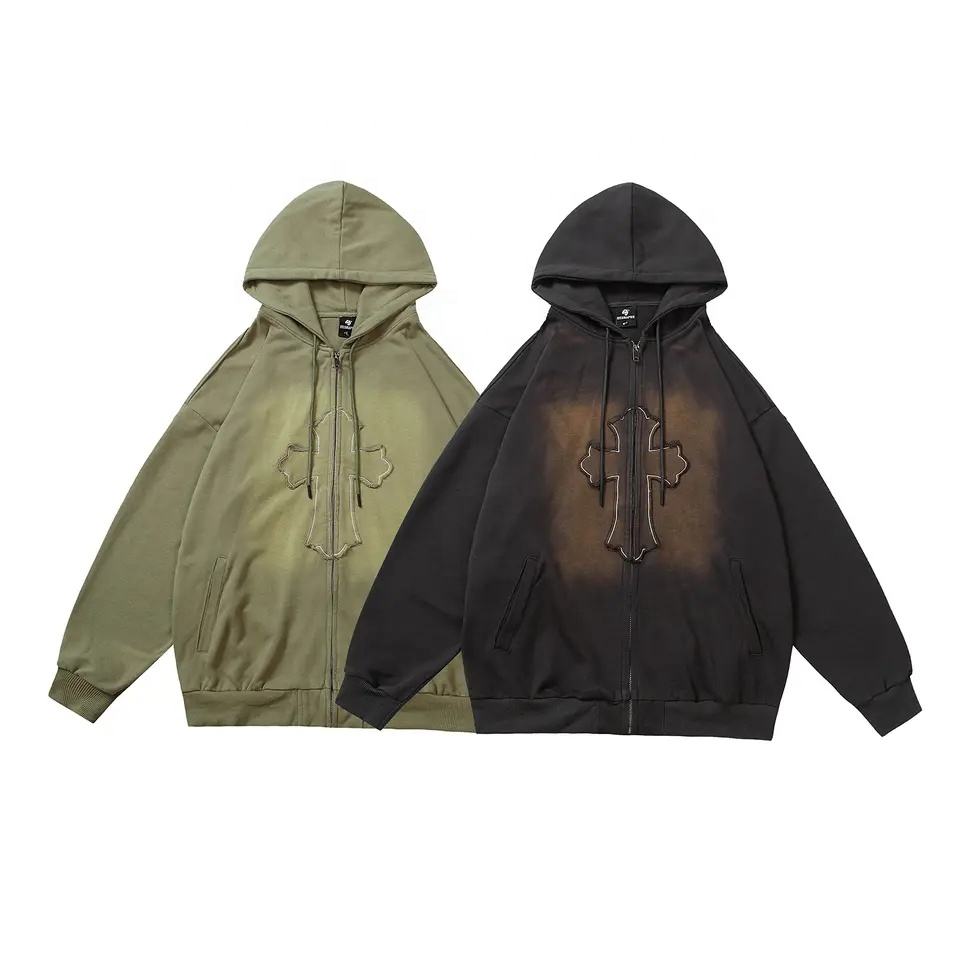 2025 personalizado estrella Puff impresión Unisex Oversize DTG impresión Sudadera con capucha bordado serigrafía Sudadera con capucha ácido lavado Zip HOODY