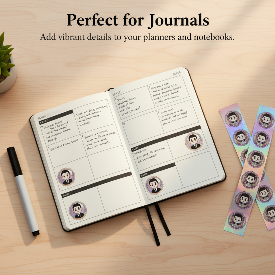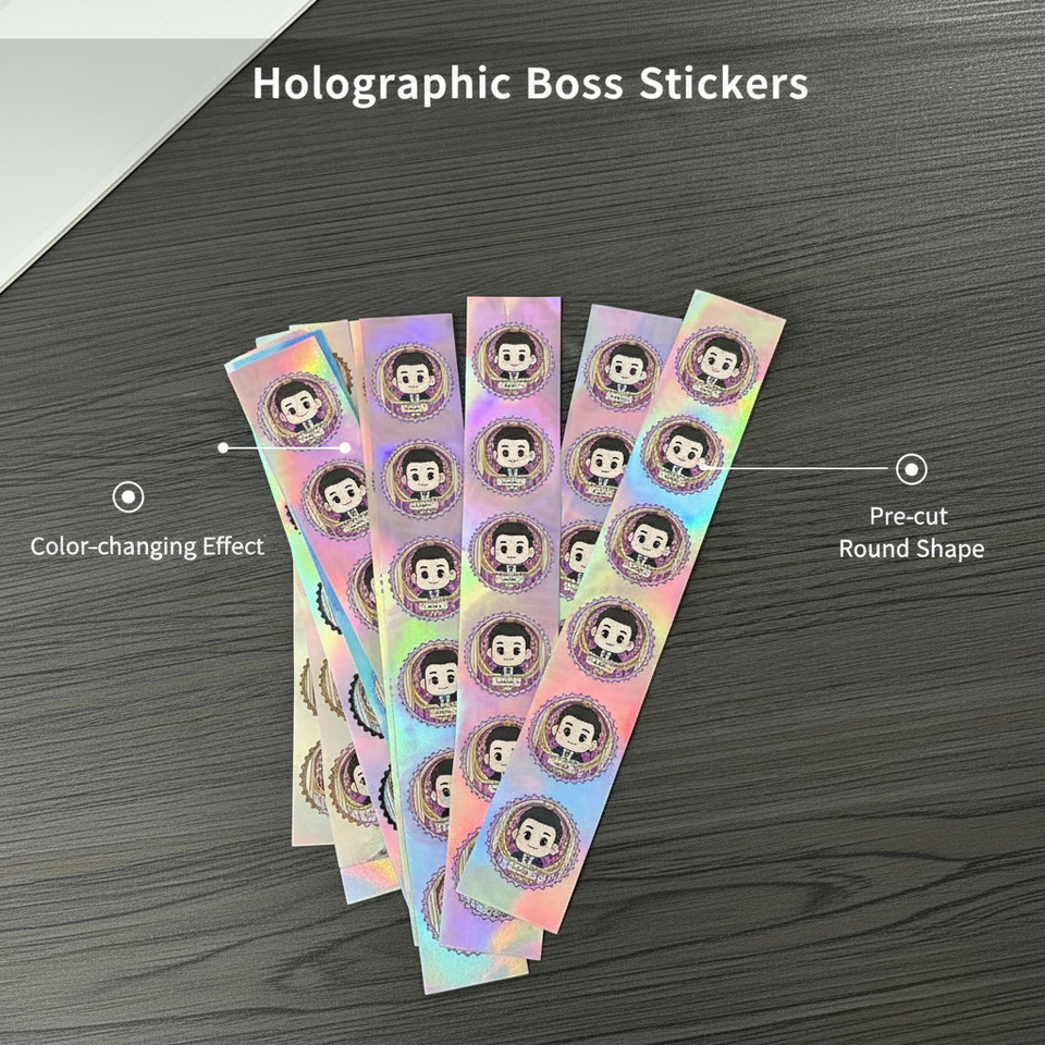 Pegatinas Personalizadas, Pegatinas Redondas de Dibujos Animados, Acabado Plateado Holográfico