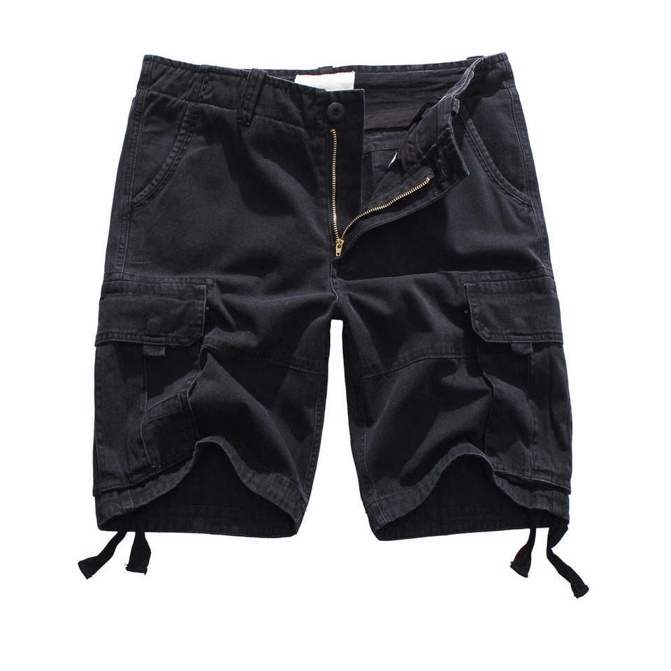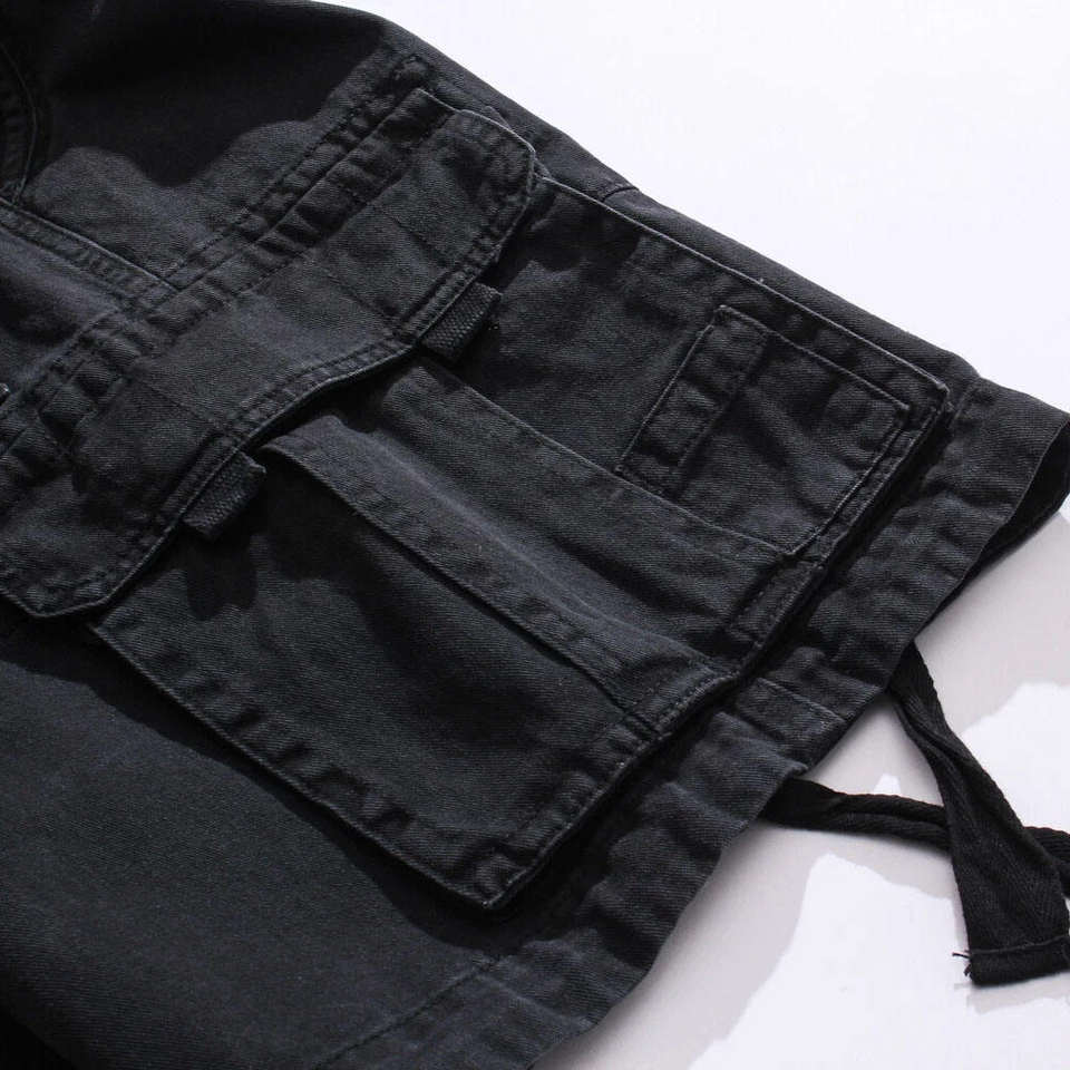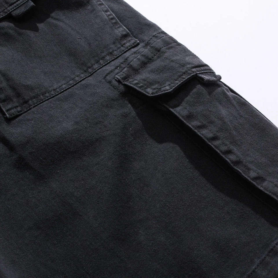 Pantalones cortos de mezclilla cargo con bordado, estilo hip hop, de corte recto, multibolsillos, color negro, para hombre, estilo casual de verano.