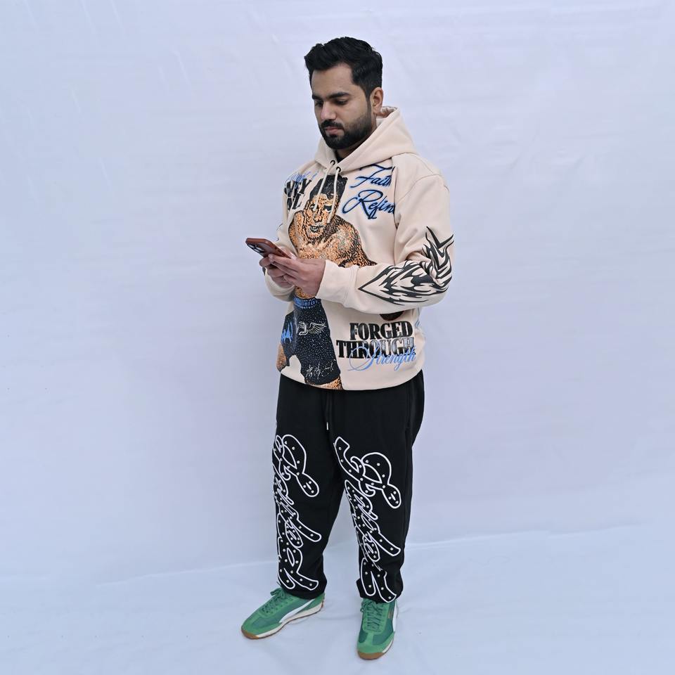 Personalizado 100% algodón Oversized Streetwear Dtg estampado de dos piezas con capucha Anime Jogger con mangas largas trajes de chándal