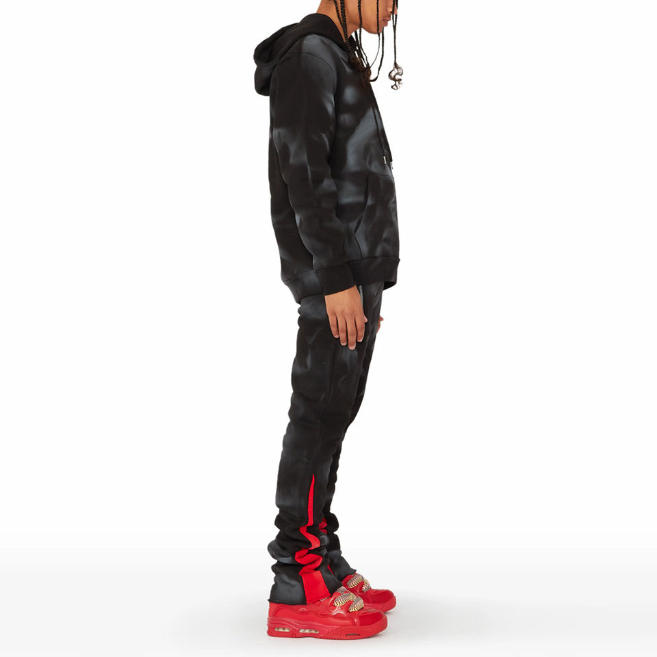 Chándal de hombre personalizado con parches bordados desgastados, de algodón, corte ajustado, con diseño patchwork y pantalón acampanado