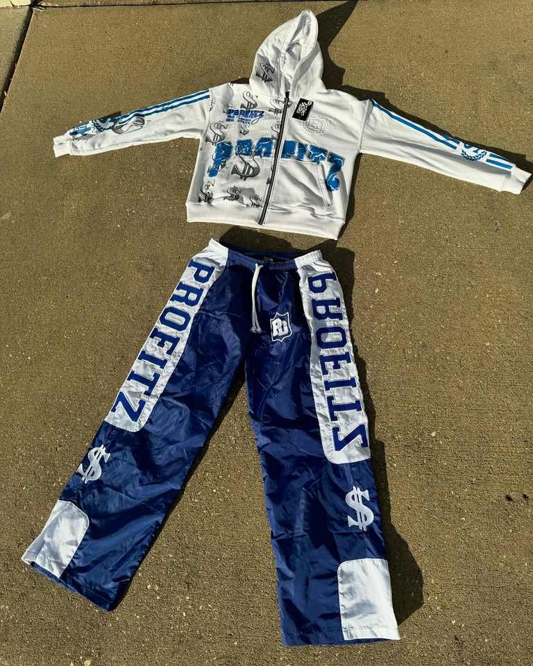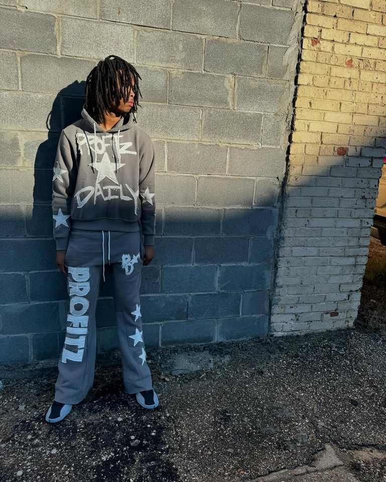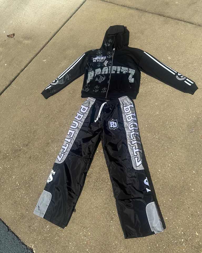 Conjunto de sudadera con capucha y pantalones de chándal para hombre, ropa informal personalizada, corte y costura, apliques, parche bordado desgastado