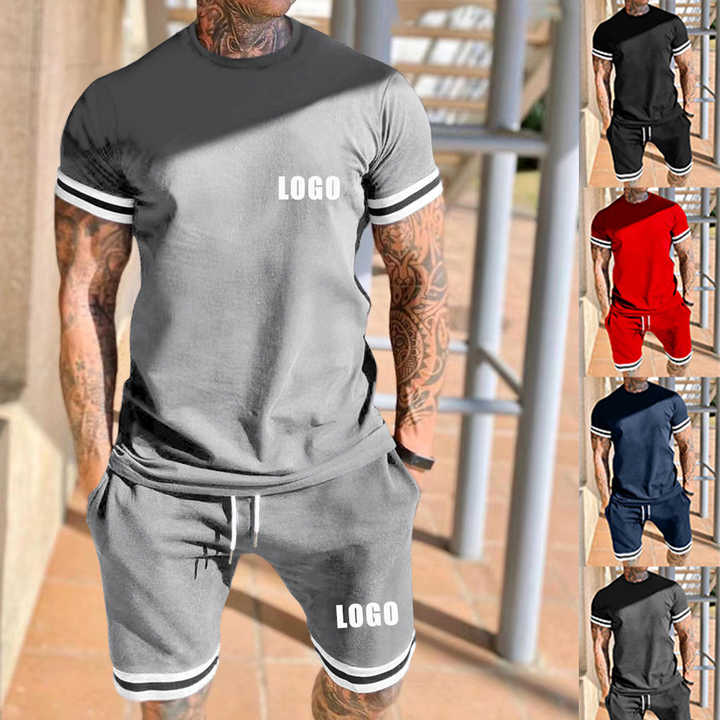 Conjunto corto de 2 piezas a rayas personalizado, ropa de verano para hombre, chándal en blanco al por mayor, conjunto de chándal para hombre, trajes para hombre Chandal Hombre