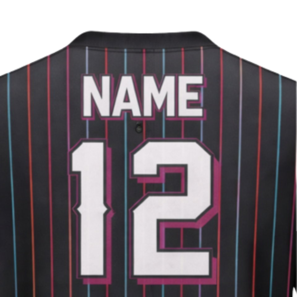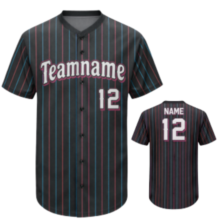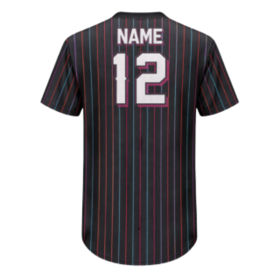 Camiseta de Béisbol Personalizada con Rayas, Diseño con Botones, Colores Vibrantes, Número de Jugador y Colores del Equipo Personalizados para Ropa Deportiva Masculina