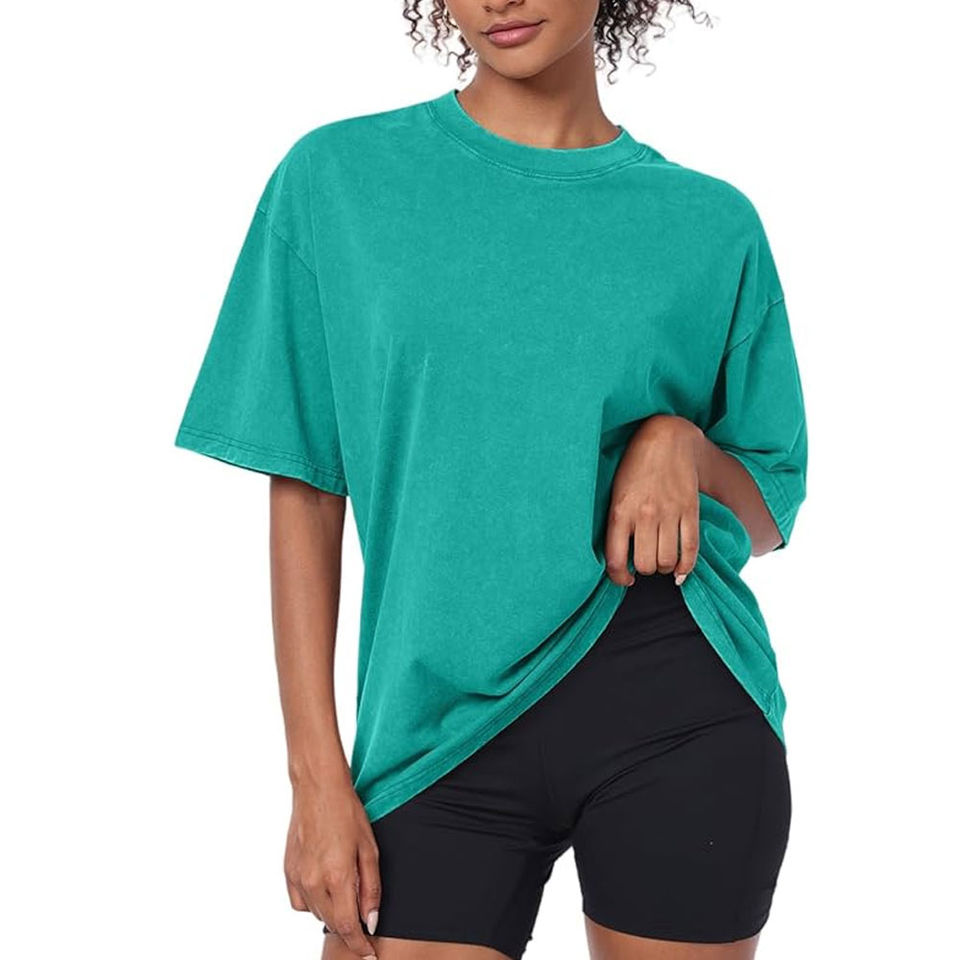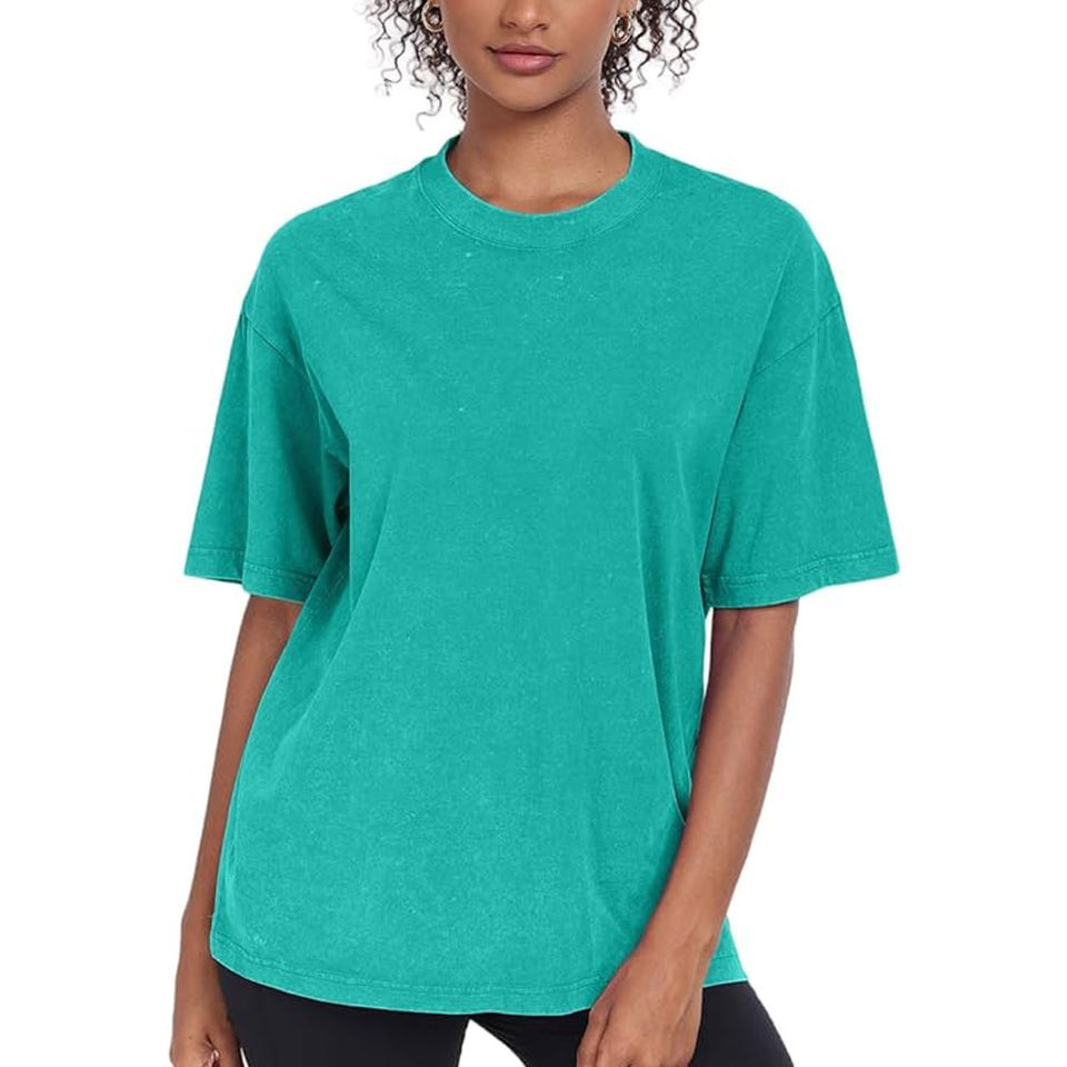 Camiseta lisa de manga corta informal de estilo personalizado para mujer, camiseta de lavado ácido S 100% algodón de talla grande, camiseta de lavado ácido S a la venta con OEM