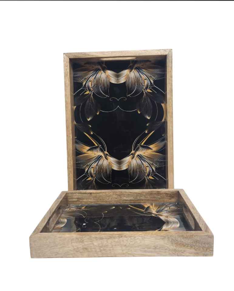 Bandeja de madera de diseño personalizado, bandeja de madera de mango, bandeja de madera de acacia, bandeja para servir, bandejas decorativas de madera al mejor precio al por mayor