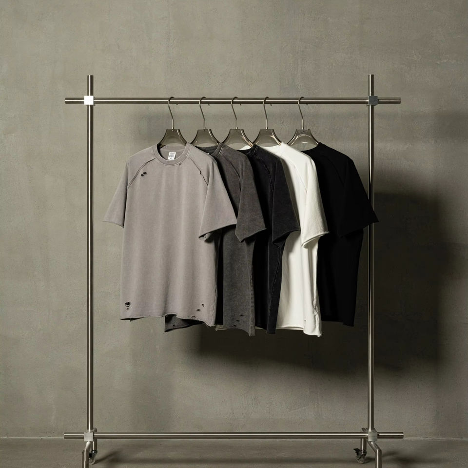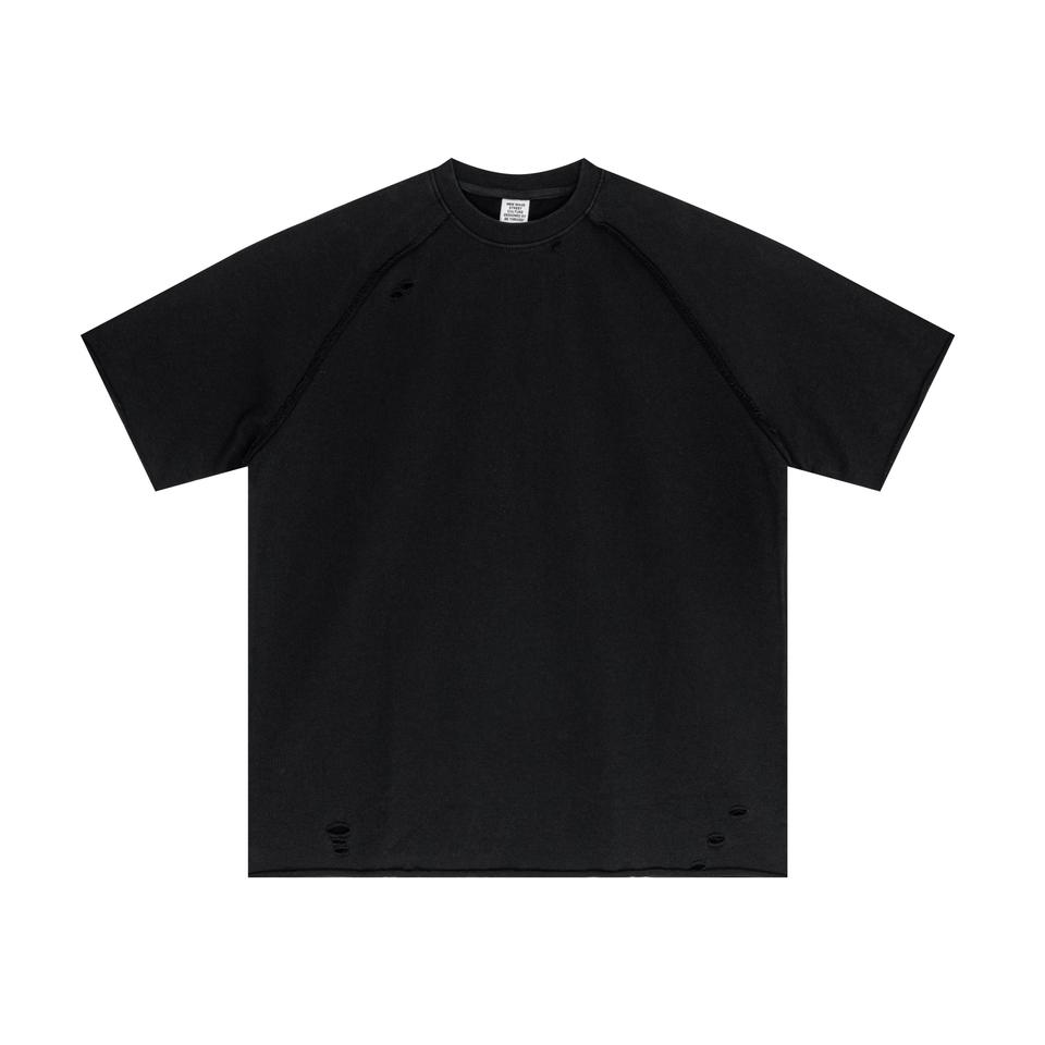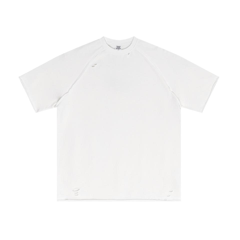 Camiseta de punto personalizada con estampado desgastado de manga corta para hombre, 100% algodón, básica, informal, suave, transpirable, estilo hip hop urbano