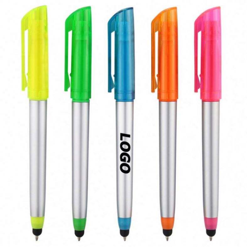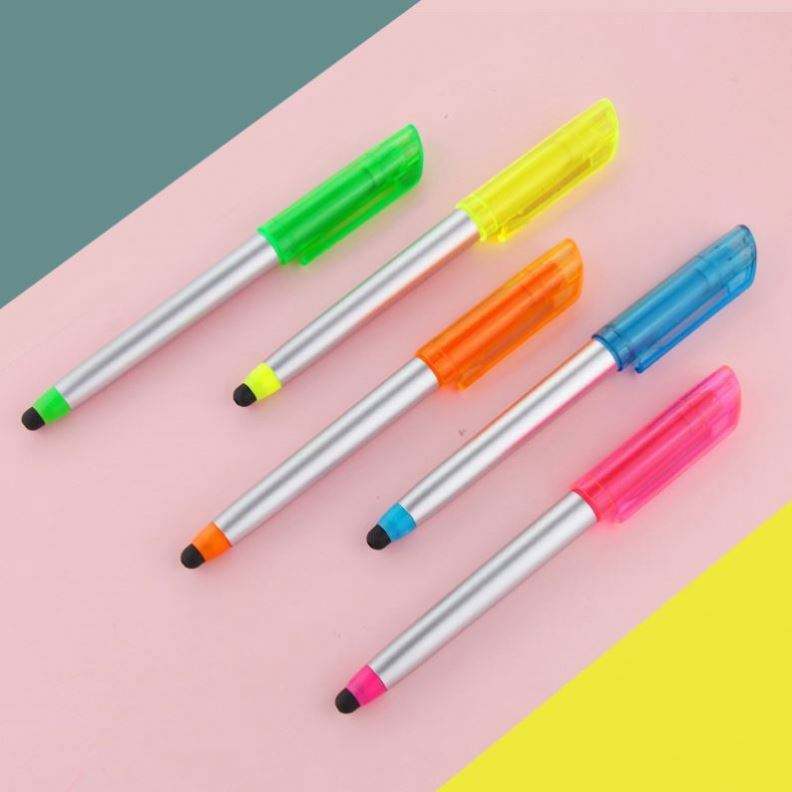 Lápiz Óptico Personalizado con Puntas de Resaltador, 3 en 1, Pantalla Táctil, Combo de Escritura - Colores Brillantes, Tinta Negra, Regalo Ideal