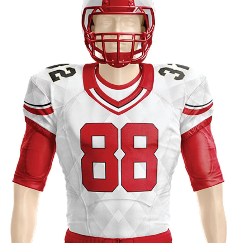 Uniforme de fútbol americano sublimado personalizado para hombres blanco rojo aparejo sarga equipo 100% poliéster pantalones cortos Jersey traje