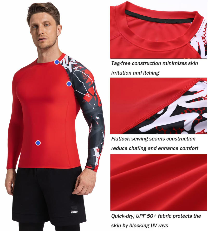 Personalizado sublimado manga larga MMA BJJ Rash Guard secado rápido compresión ajuste gimnasio camisa Anti-UV ropa deportiva hecha en Pakistán OEM