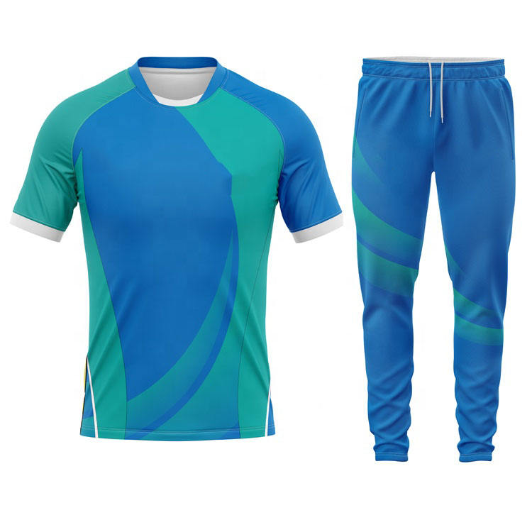 Conjunto de Camiseta y Pantalones Deportivos Sublimados Personalizados, Diseño Azul y Verde Azulado, Transpirable, de Secado Rápido, Uniforme Deportivo para Equipos