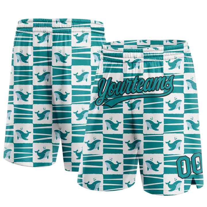 Pantalones Cortos de Baloncesto Bermuda con Diseño de Sublimación Personalizado para Hombre, Color Verde Azulado, Transpirables, Ecológicos, de Secado Rápido, Estilo Urbano, Náuticos, para Gimnasio