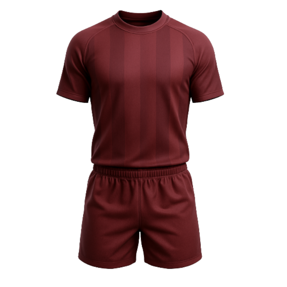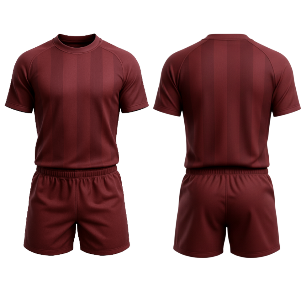 Uniforme de Rugby Personalizado por Sublimación Color Granate - Conjunto de Camiseta y Pantalones Cortos con Rayas en el Mismo Tono - Uniforme Deportivo