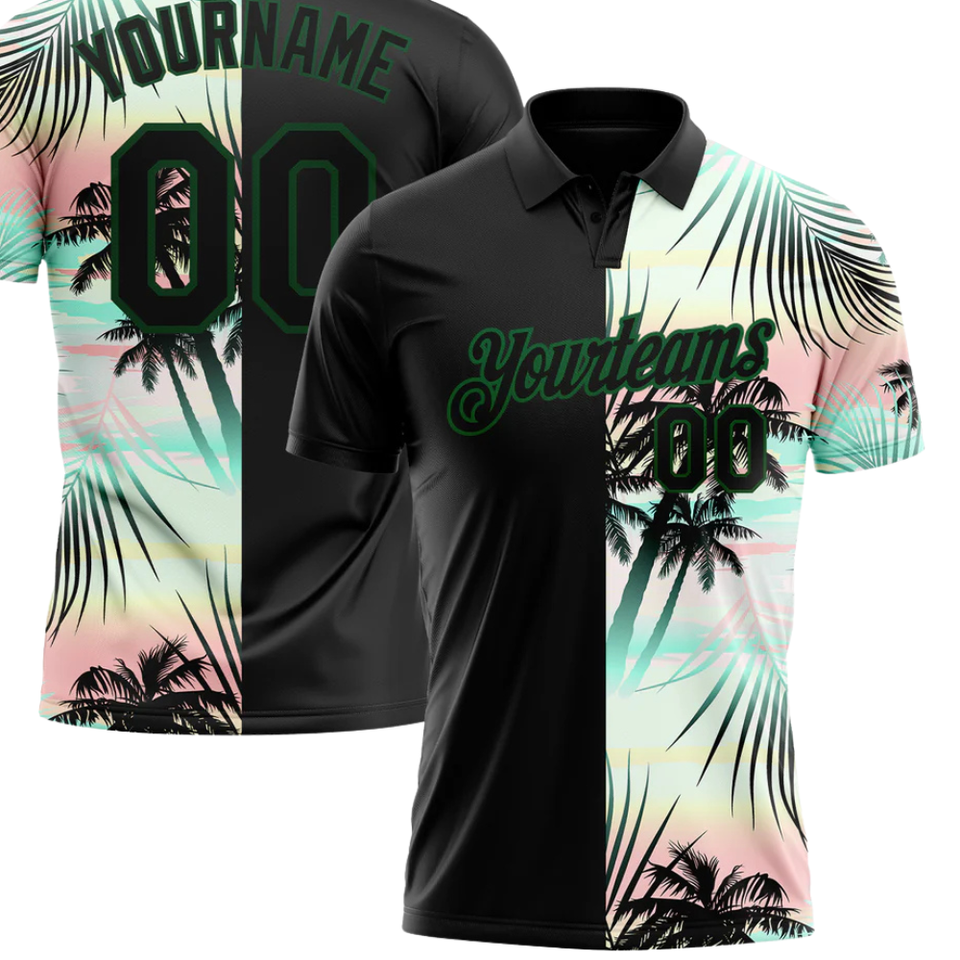 Camiseta Polo Sublimada Personalizada con Nombre y Número, Diseño de Palmera en Negro y Pastel, Ropa de Equipo con Impresión Personalizada