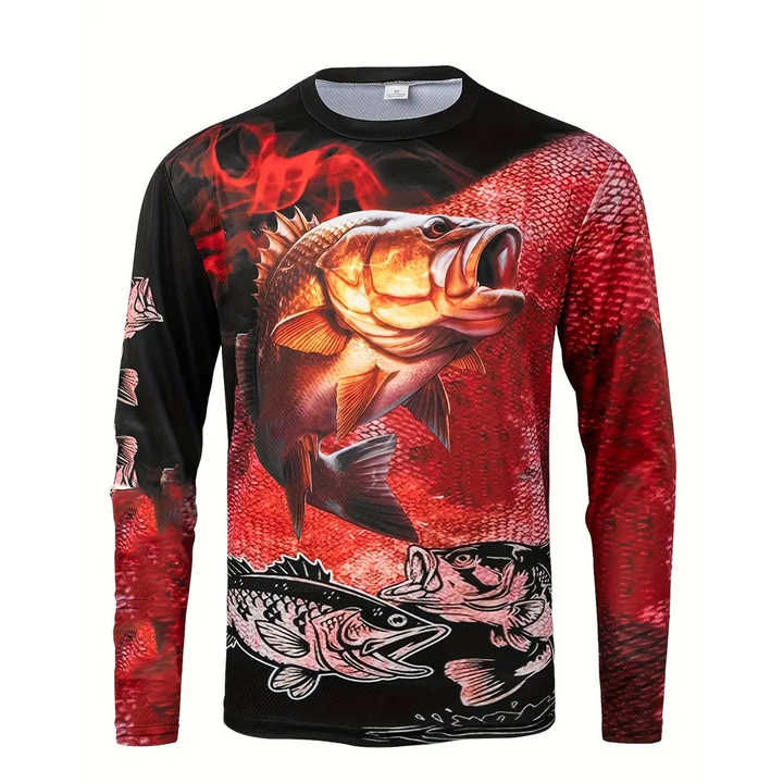 Camiseta de Pesca de Manga Larga Ligera para Hombre con Estampado de Sublimación Personalizado, Camiseta de Pesca de Alta Calidad Más Vendida