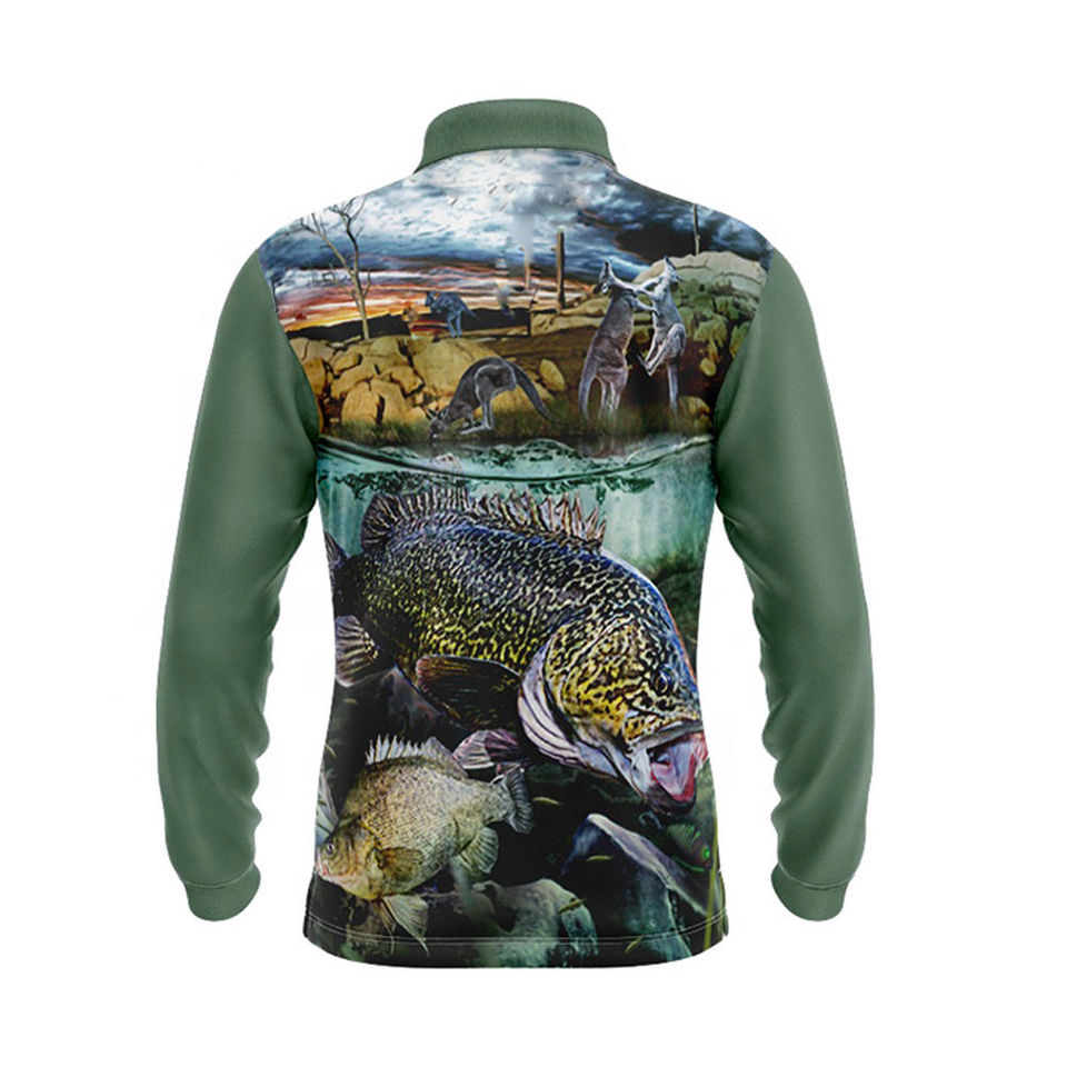 Camisa de Pesca Ligera de Manga Larga para Hombre con Estampado de Sublimación Personalizado, Protección Solar UPF 50+, Talla Grande, Transpirable, 100% Poliéster, Impermeable
