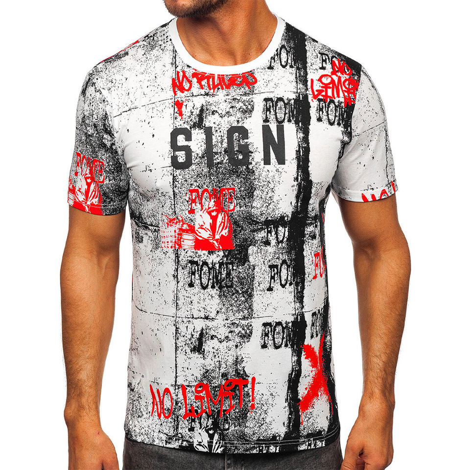 Camiseta de mezcla de poliéster y algodón con estampado de sublimación personalizado para hombre, nueva moda de diseño informal, ropa de calle para hombre, camisetas