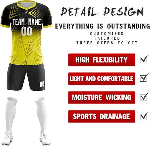 Conjuntos de Uniformes de Fútbol Sublimados Personalizados, Transpirables, de Secado Rápido, Tela 100% Poliéster, Logotipo del Equipo Personalizable, Nombre Gratis