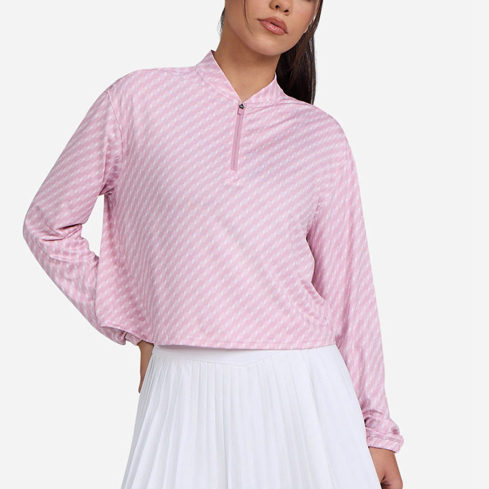 Sublimación personalizada Quater ZipPolyester Spandex Tela suave Impreso Technics Diseño libre Mujeres Upf 50 Golf Pullover Hood