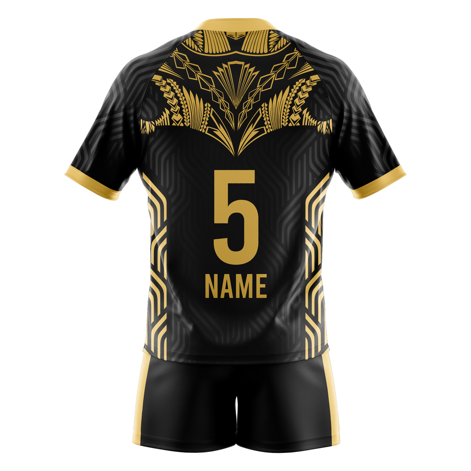 Conjunto de Uniforme de Rugby Sublimado Personalizado, Jersey y Pantalones Cortos para Equipo, Kit Deportivo Premium en Negro y Dorado