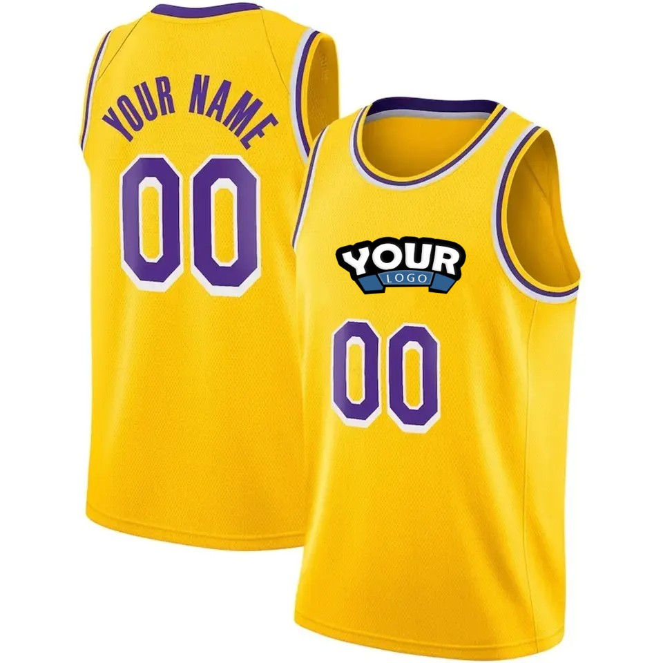 Sublimación personalizada Número amarillo #24 Camisetas de baloncesto bordadas Logotipo de impresión digital Camiseta de baloncesto del equipo universitario
