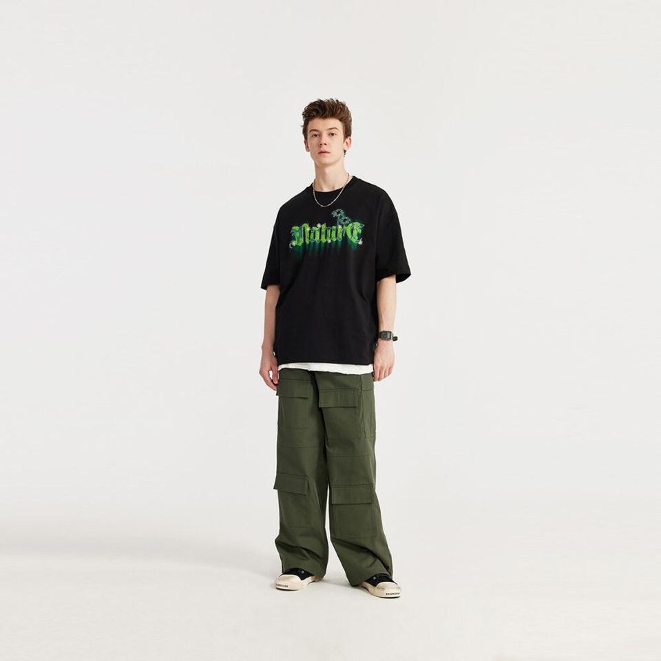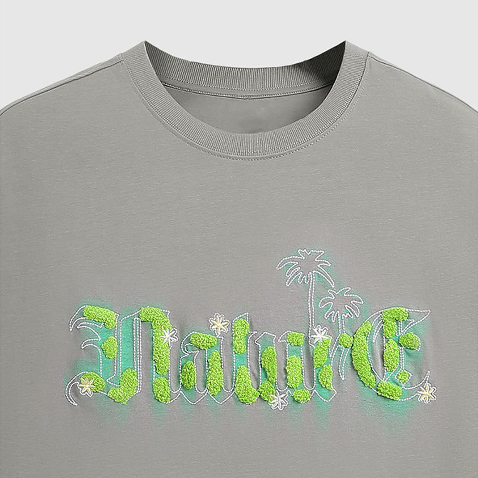Camiseta unisex de cuello redondo personalizada de algodón de verano 280 gramos bordada con patrón de toalla de colores 260 gramos de peso de tela