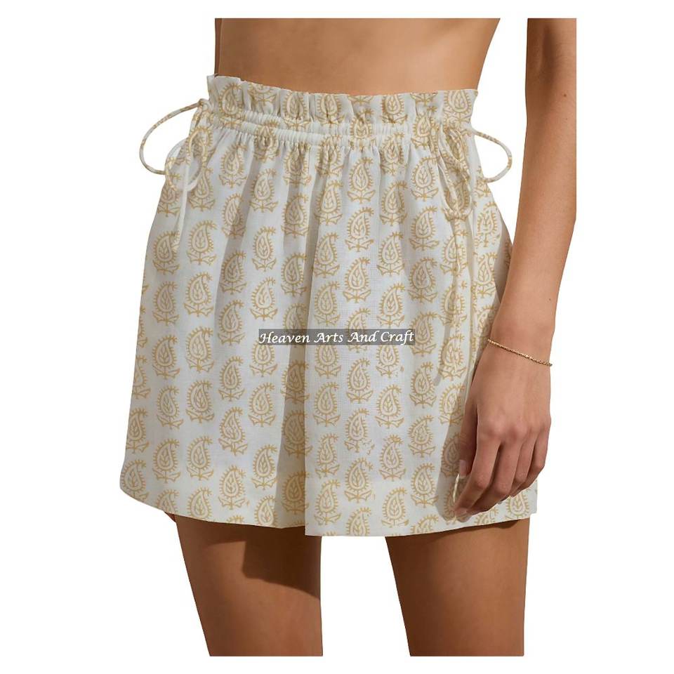 Pantalones Cortos de Fines de Semana Estampados a Mano en Bloque 100% Algodón