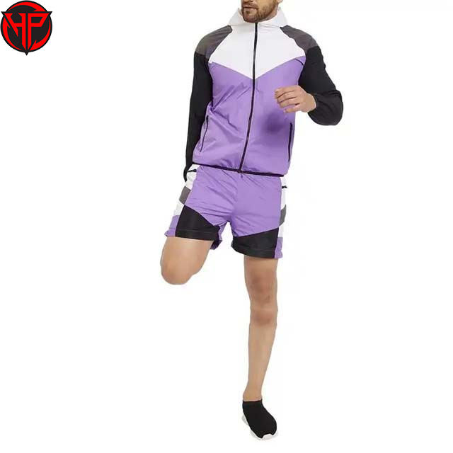 Conjunto Deportivo Personalizado de Primavera, Ligero y Transpirable, con Chaqueta Cortavientos y Pantalones Cortos de Poliéster, Dos Piezas