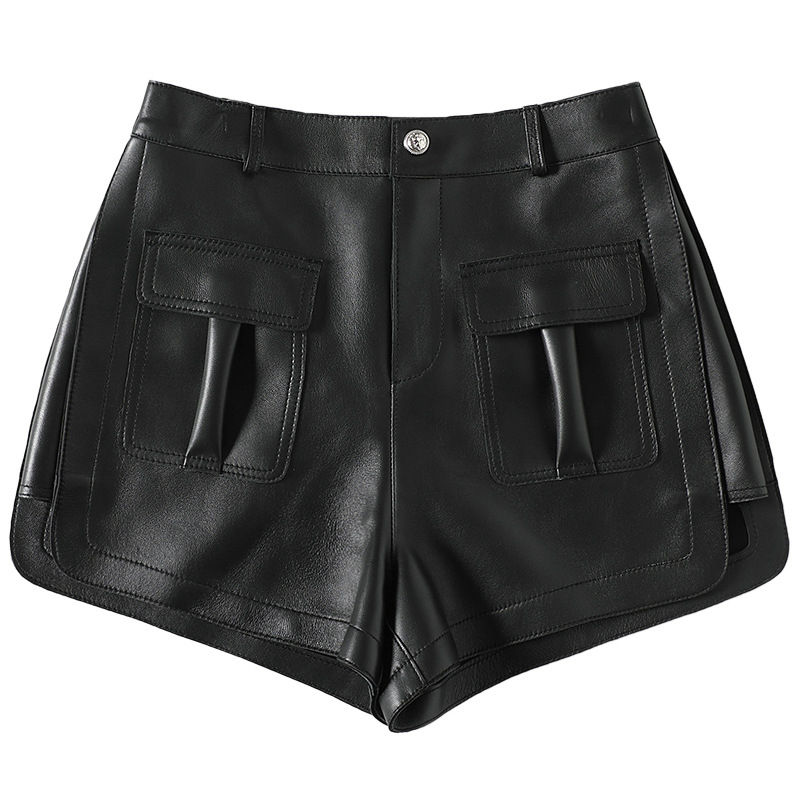 Pantalones cortos de piel auténtica de verano personalizados pantalones cortos de piel de cintura alta informales para mujer personalizados pantalones cortos de mujer hechos a medida