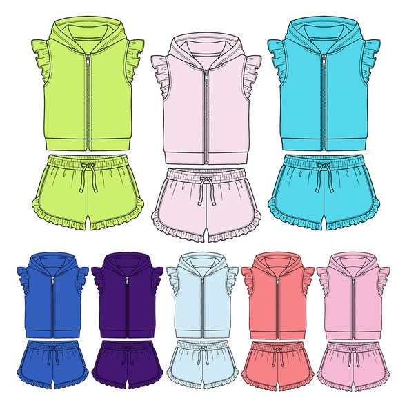 Conjunto de Ropa de Verano para Niñas Pequeñas, Sudadera con Capucha de Color Sólido, Pantalones Cortos Deportivos, 2 Piezas