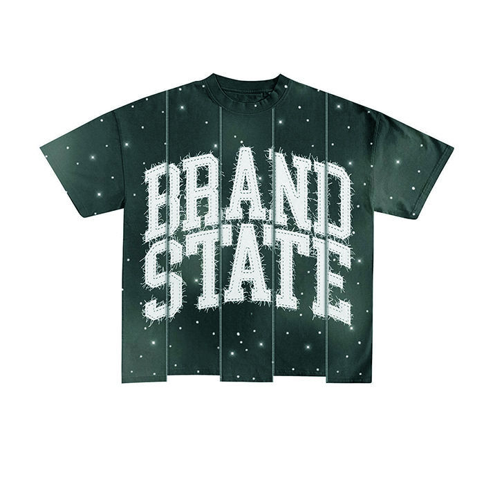 Camiseta Personalizada con Bordado de Diamantes de Imitación con Efecto Desgastado por el Sol, 100% Algodón, Diseño Unisex Moderno y Urbano