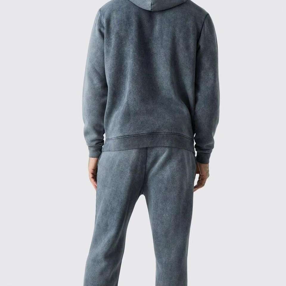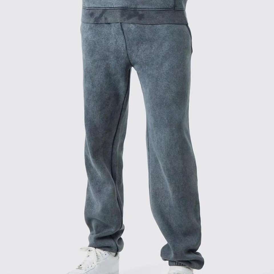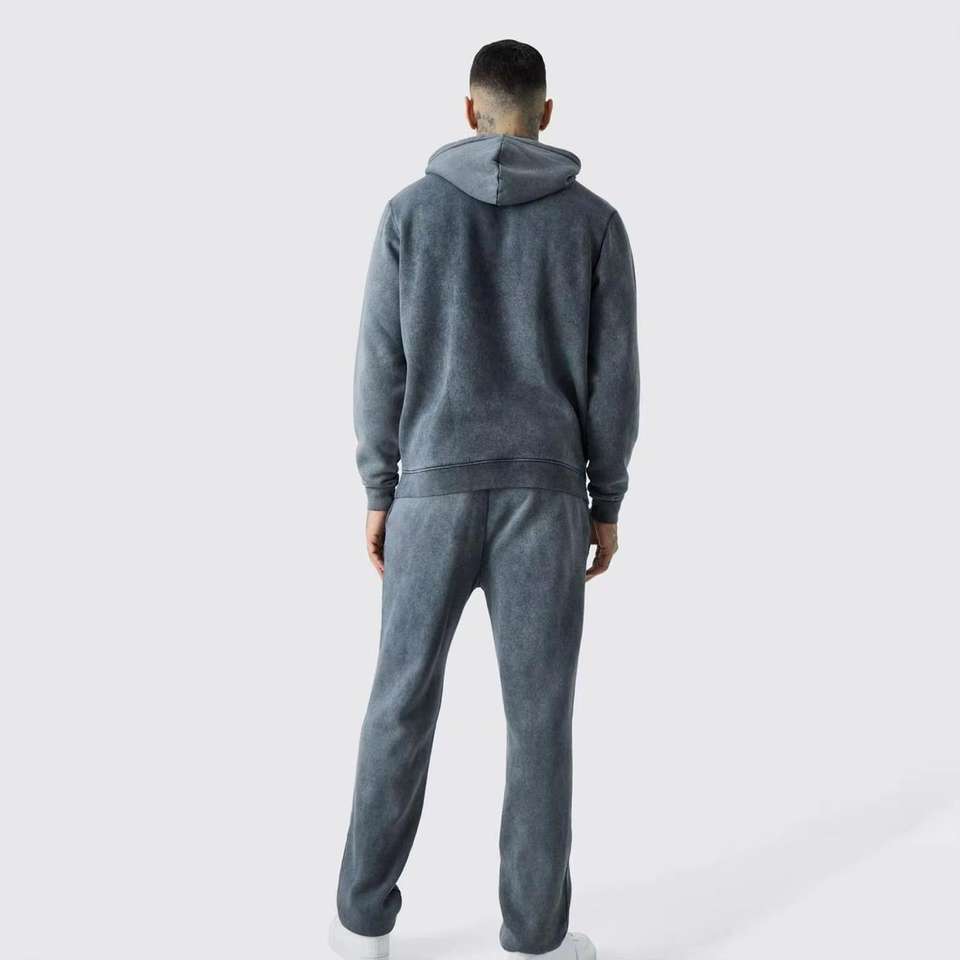 Conjunto de Sudadera con Capucha y Pantalones Deportivos Personalizados con Efecto Desgastado por el Sol, Lavado Ácido, con Cierre de Cremallera, para Hombre