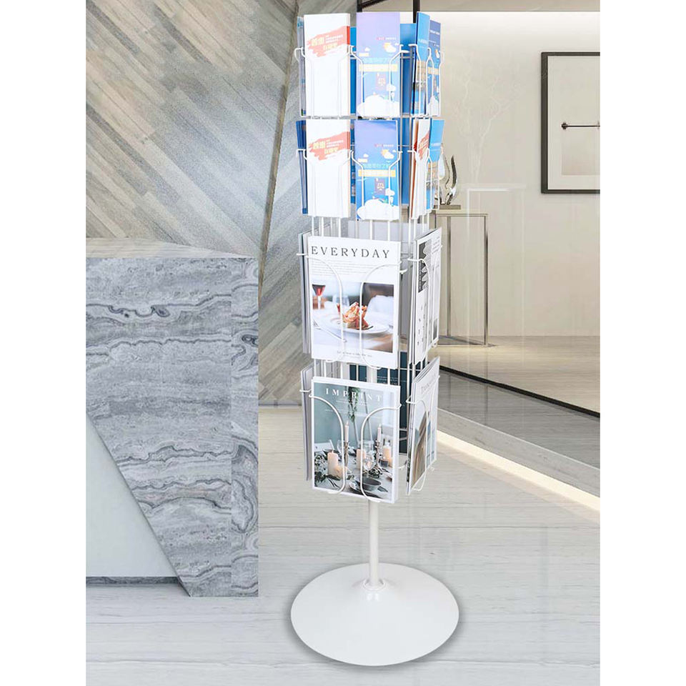 Soporte de folleto de supermercado personalizado Bastidores de CD Soporte de exhibición de postal giratorio de piso de metal Estantes de exhibición de tarjetas al por menor