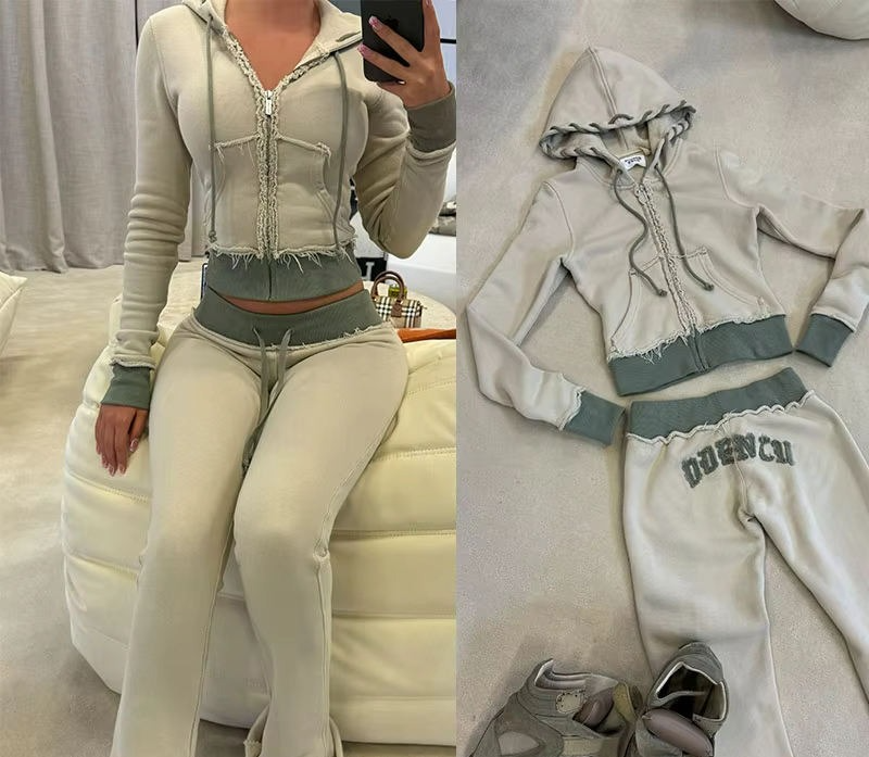 Conjunto de Sudadera y Pantalones Deportivos de Invierno Personalizados con Bordado, Top Corto con Capucha y Pantalones Joggers de 2 Piezas, Ropa para Hombre, Impermeable y Transpirable