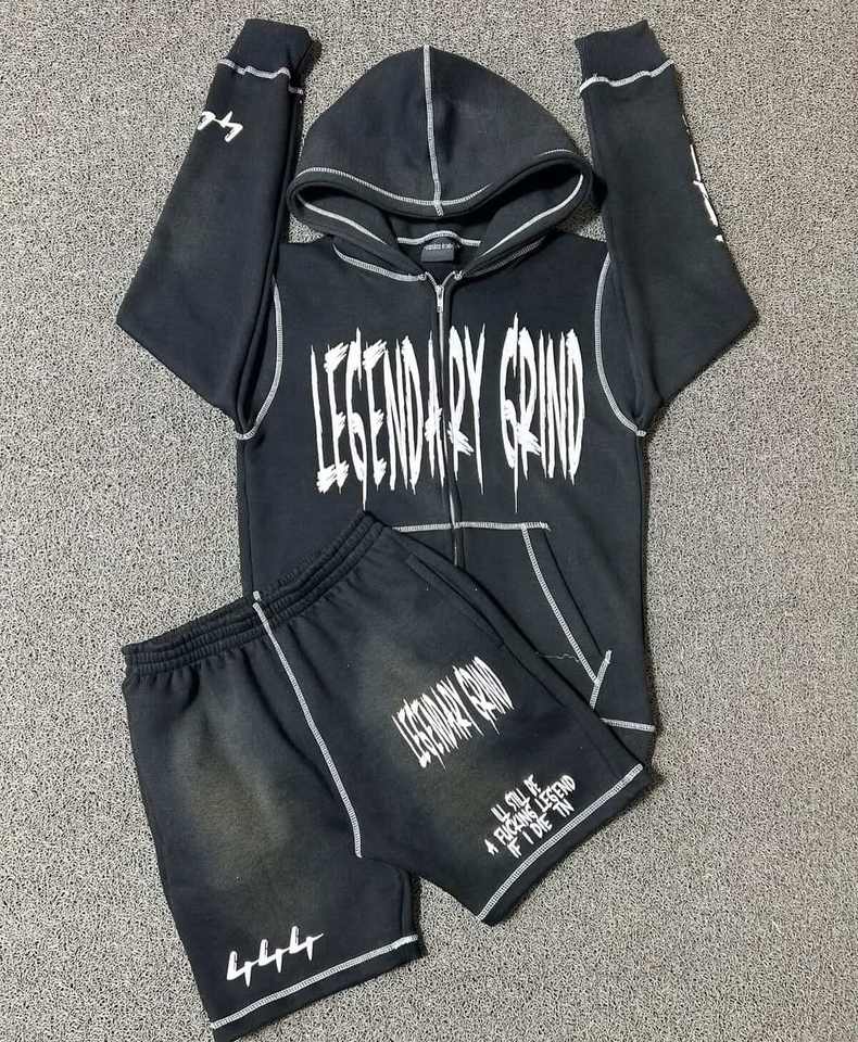 Trajes de chándal personalizados Conjunto de 2 piezas Serigrafía Bordado Diamantes de imitación Chándales para hombres Zip Hoodie Short Set