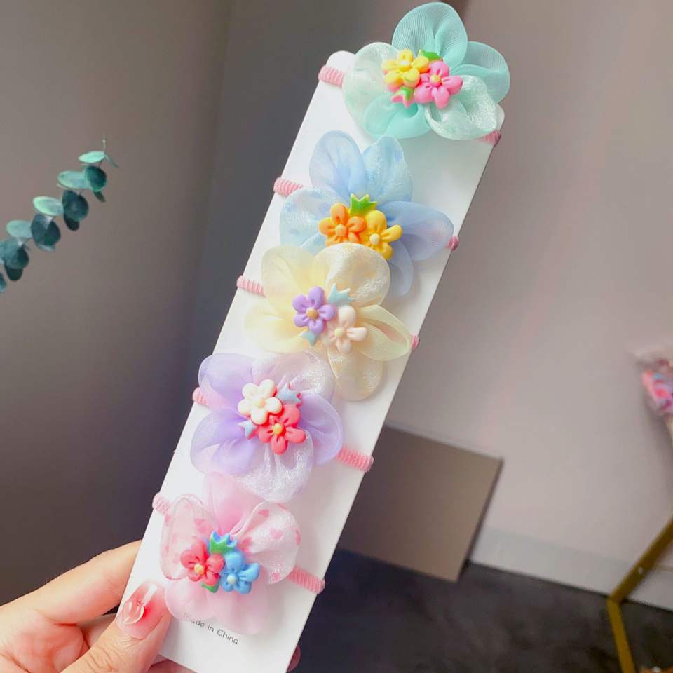 Cuerda elástica para el pelo con flores, estilo dulce personalizado, bolsa de 5 piezas