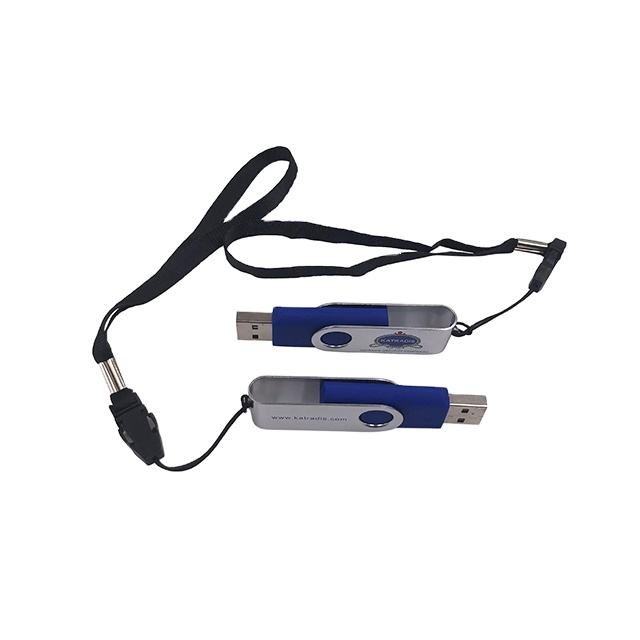 Memoria USB Giratoria Personalizada 3.0/2.0 de Metal + Silicona Azul con Impresión de Logotipo Personalizado, Regalo Promocional Empresarial, Cordón y Caja de Regalo