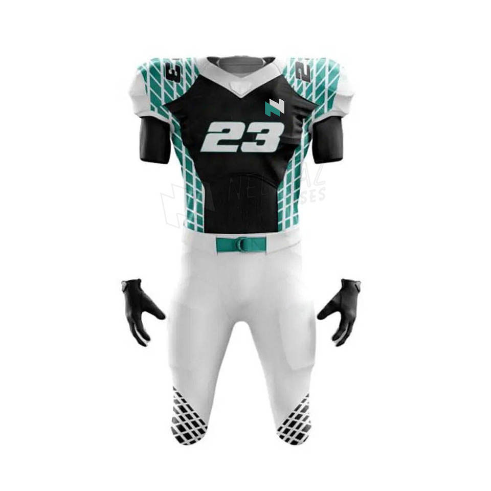 Kit de uniforme de fútbol americano de aparejos personalizados, camiseta y pantalones de sublimación transpirables para equipos juveniles y masculinos, proveedor OEM de Pakistán