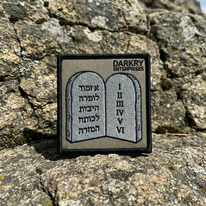 Parche Bordado a Máquina con Diseño de Tableta de Piedra de los Diez Mandamientos en Tela Color Bronceado Personalizada, para Coser o Planchar en Uniformes, Chaquetas, Bolsos y Ropa