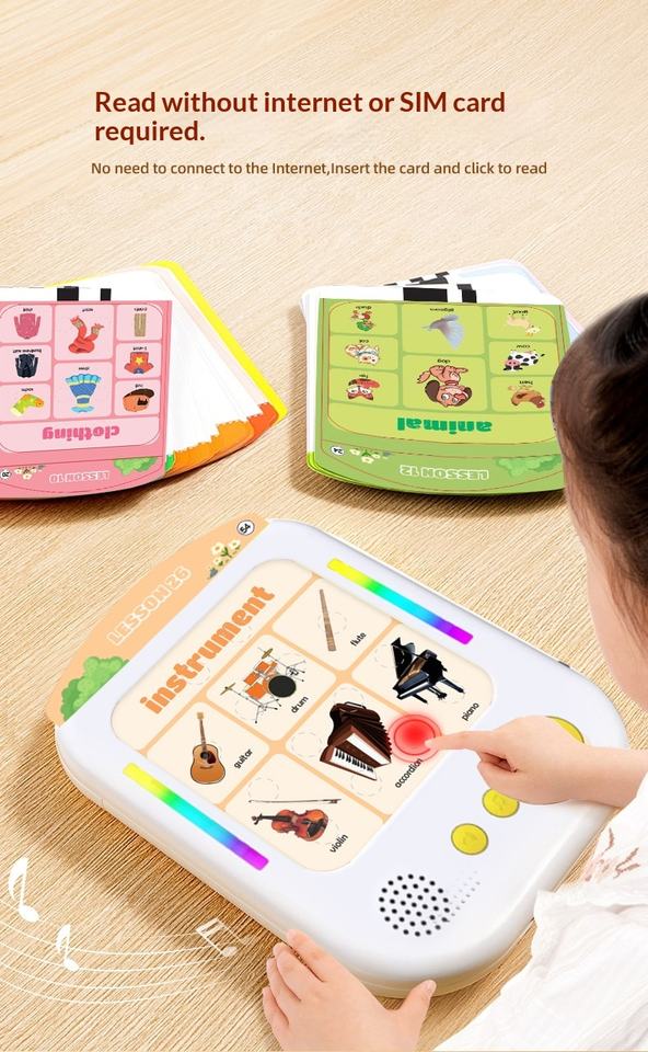 Uso:Juguete educativo para niños: Tarjetas didácticas audibles de palabras y animales