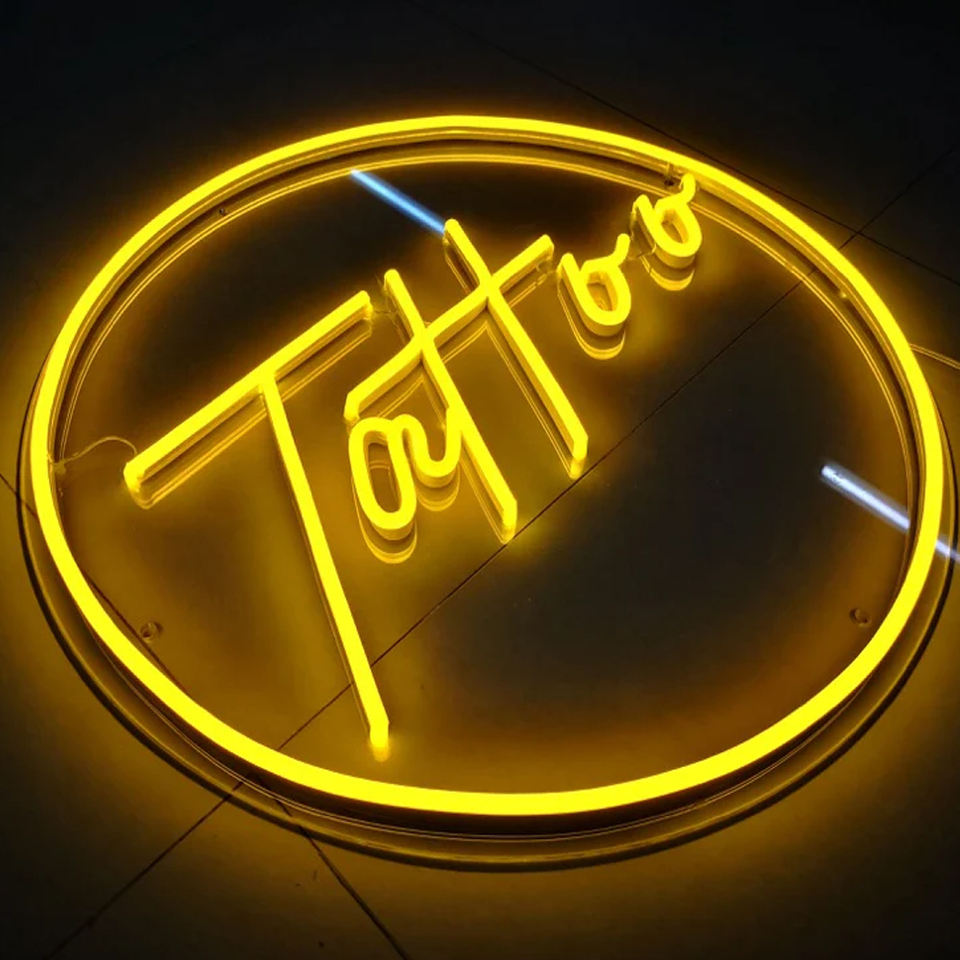Custom Tattoo Work Shop Business Sign Led Lighting up Sign Tienda Publicidad Letrero de neón Diseño de luz para su negocio