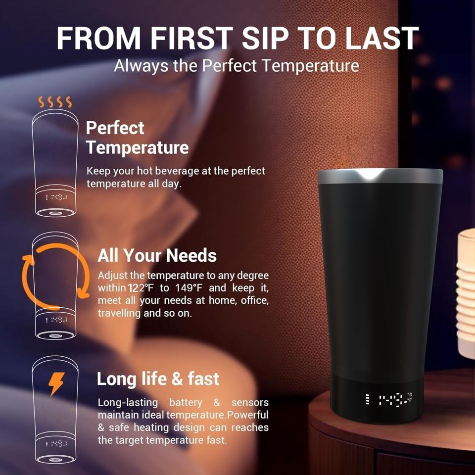 Taza de café autocalentable con control de temperatura personalizado, taza de calefacción portátil para viajes con batería incorporada