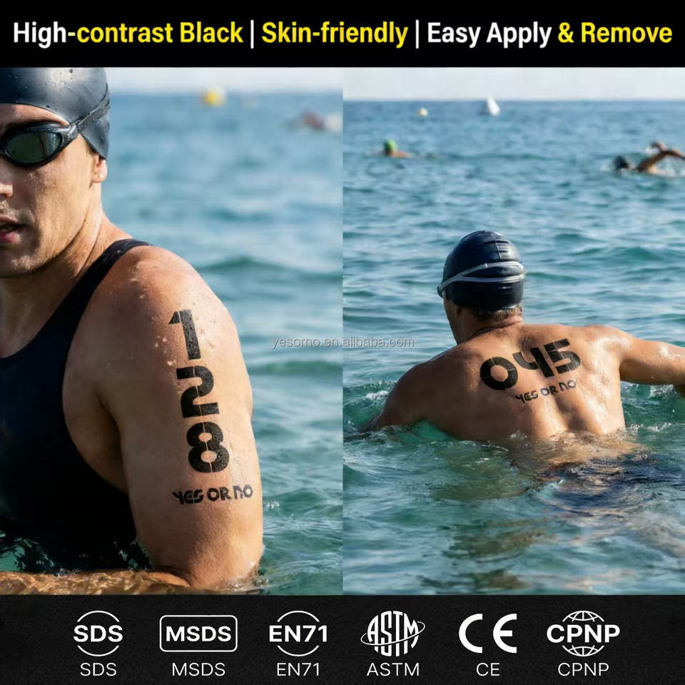 Etiquetas Adhesivas Personalizadas con Números Temporales para Eventos de Triatlón, Maratón y Natación en Aguas Abiertas | Resistente al Agua de Mar